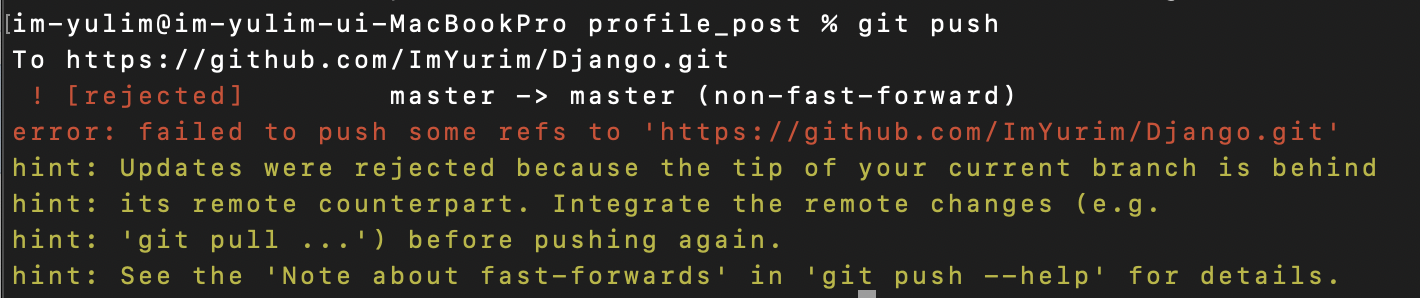 why? github의 repository와 내 local storage의 commit상태가 같지 않기때문