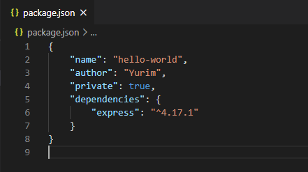 2. 작업할 폴더에 package.json 파일 만들고 다음과 같이 작성